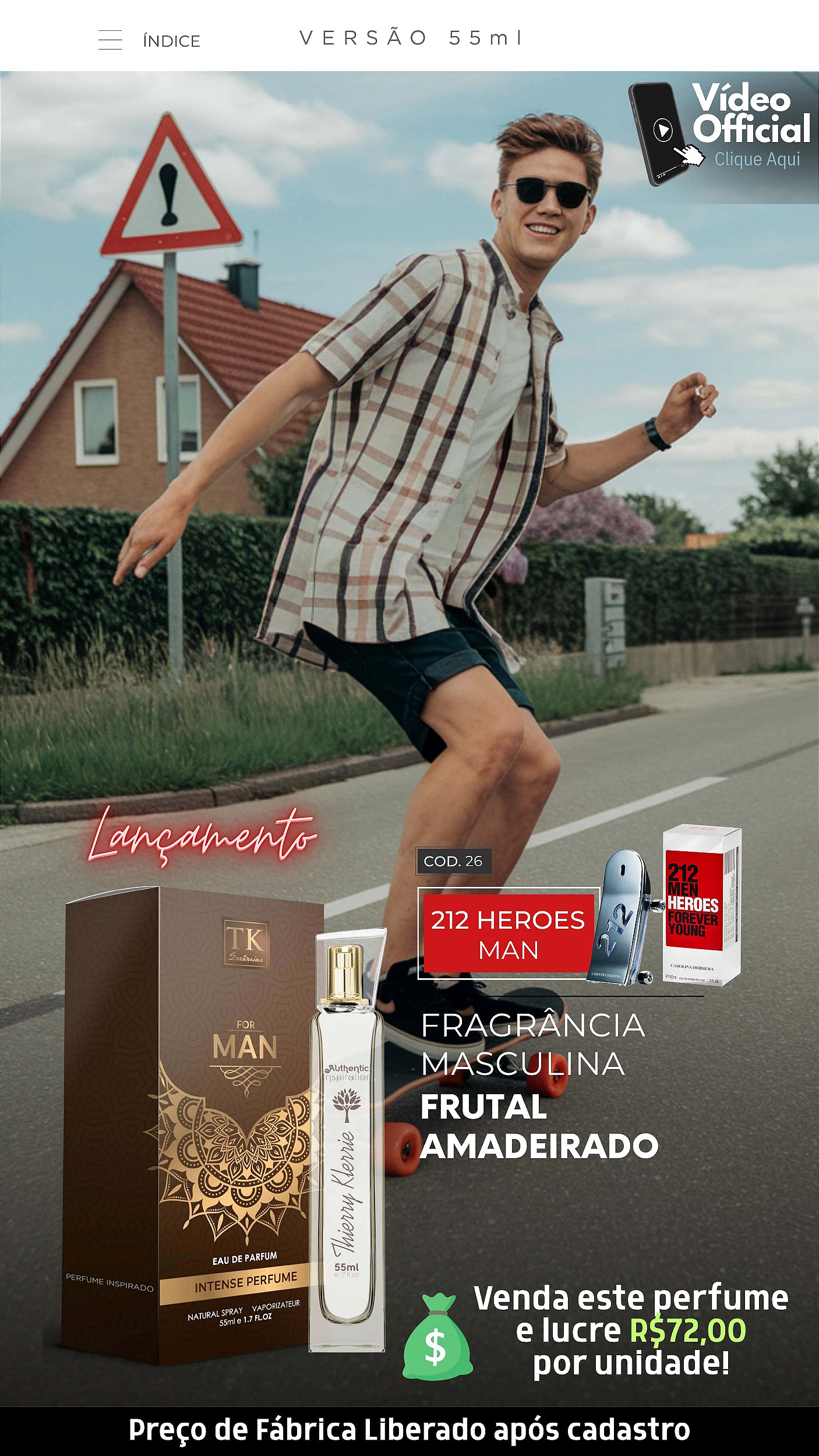 26 INSPIRAÇÃO TK - 212 HEROES MASCULINO 55ML | Perfume Para Revenda